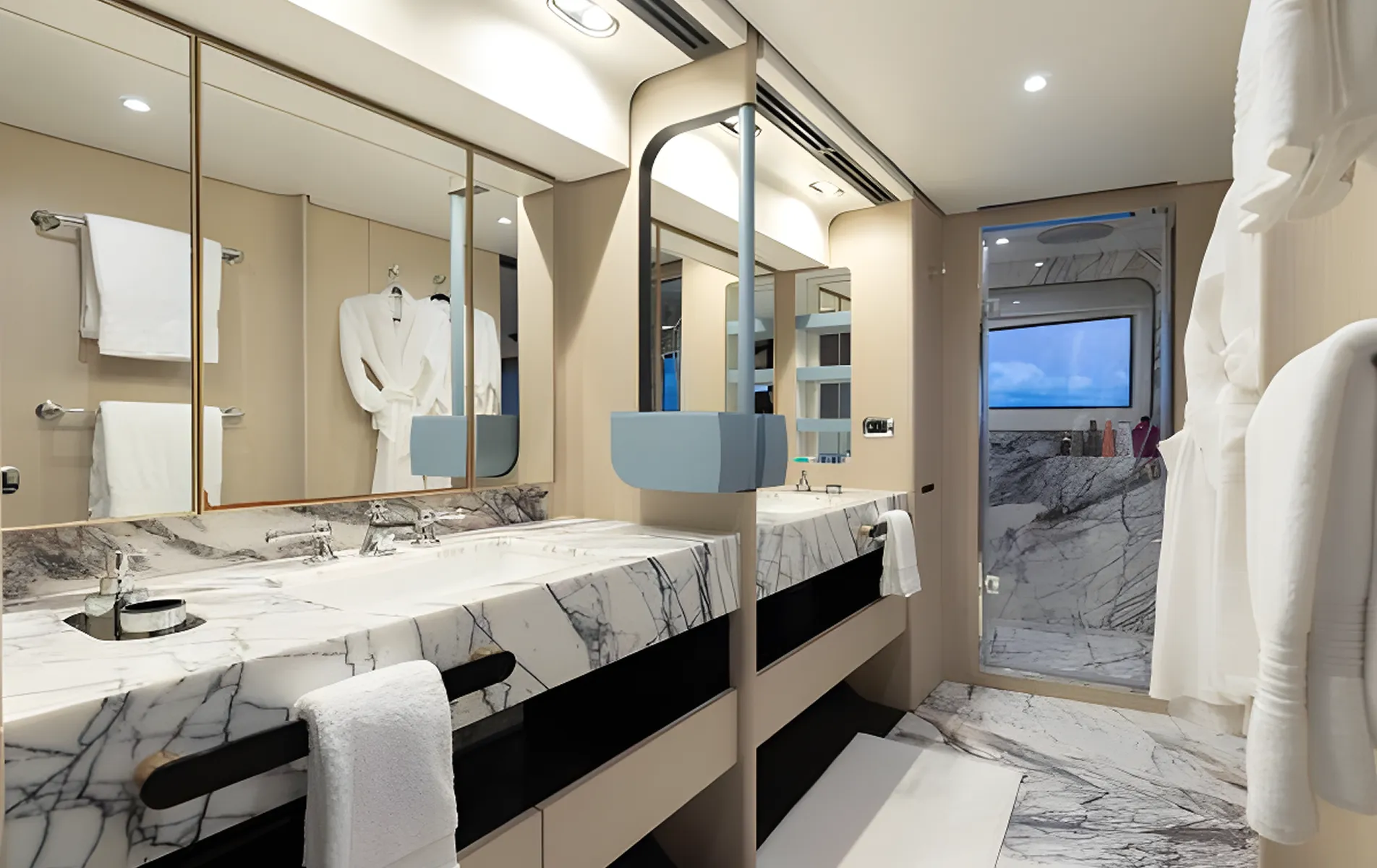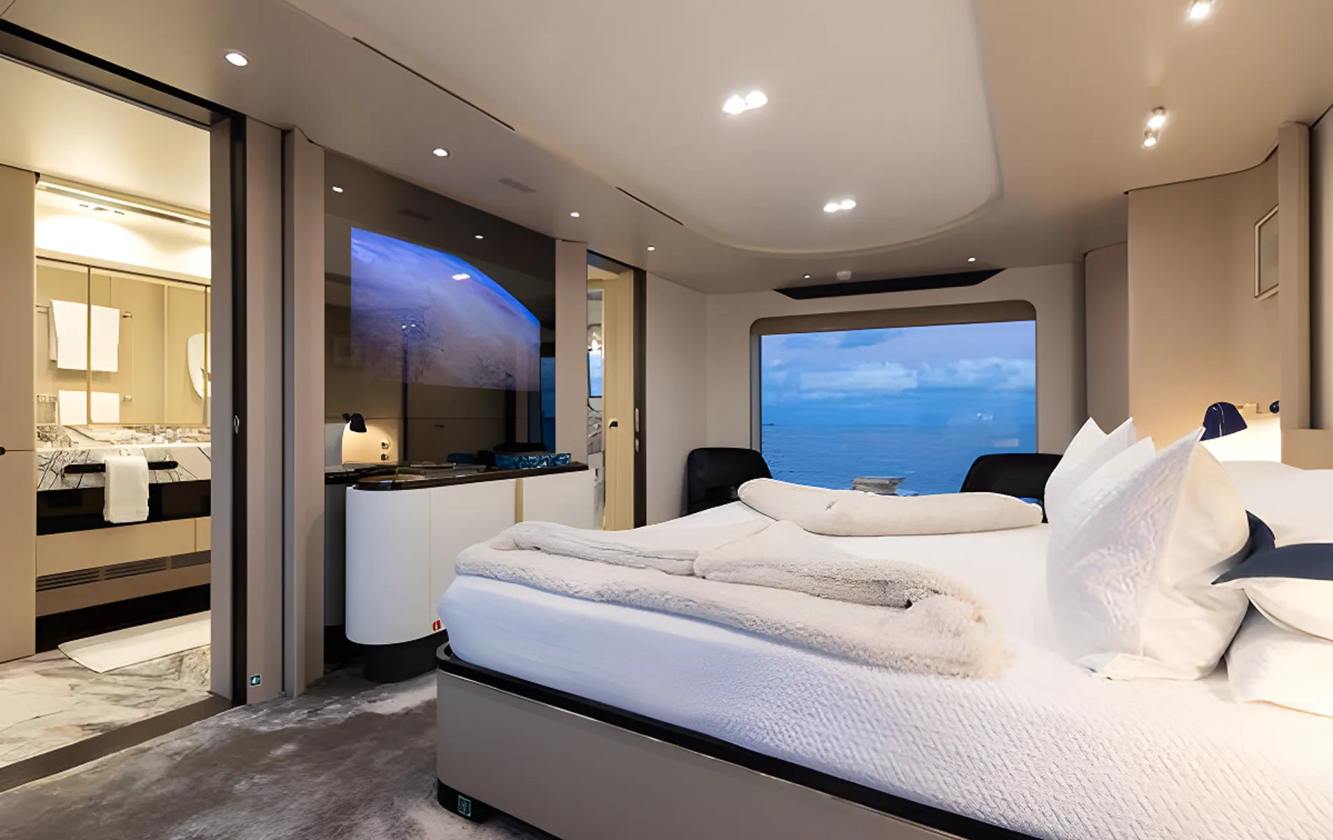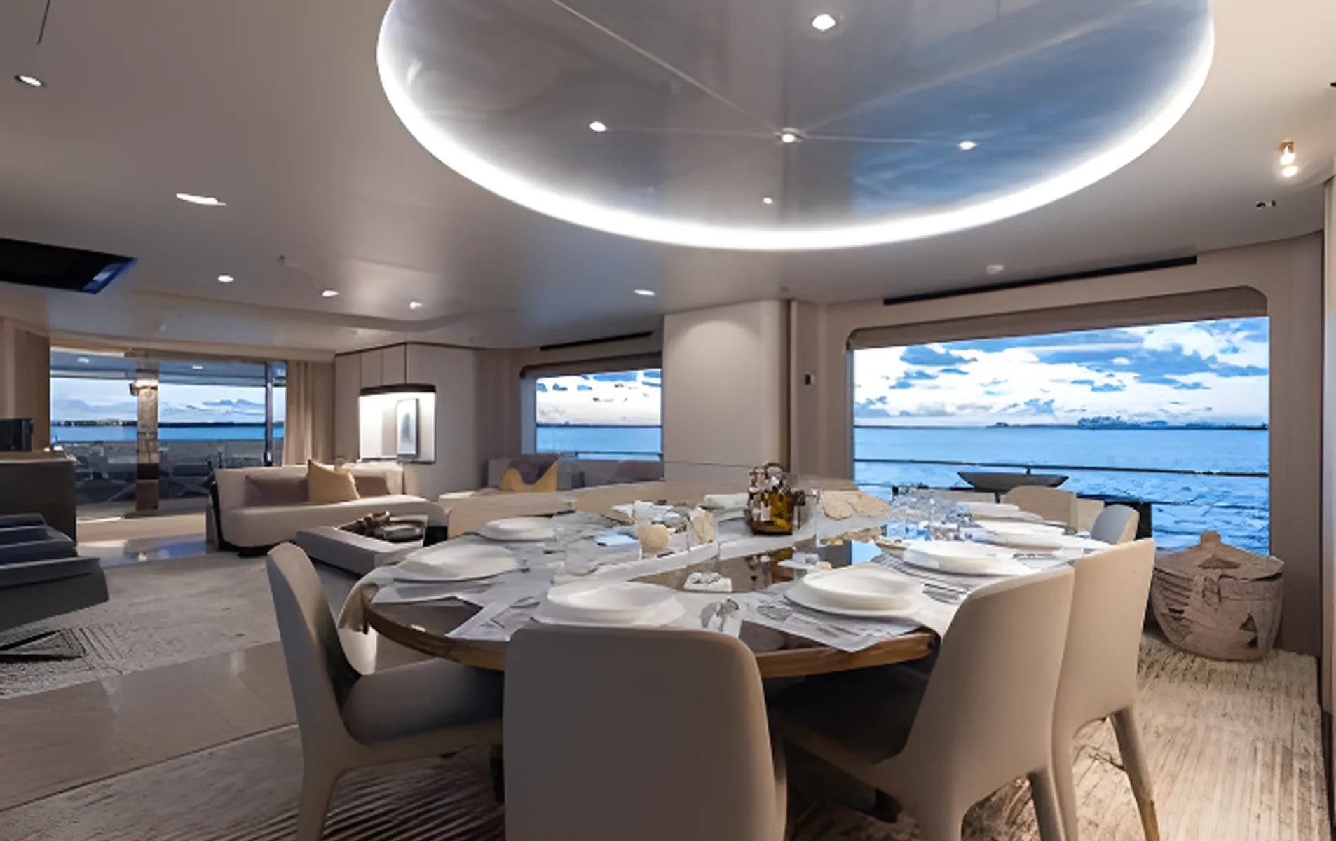 Expansive glazing, full-height windows, and a calm organic interior palette create a serene onboard atmosphere. Designed for ultra-VIP private cruising or luxury charter, LA MAMA offers generous outdoor entertainment zones, a fully equipped beach club, a main-deck ownerโs suite, and long-range cruising capability.