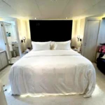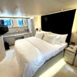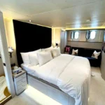 This yacht typically offers accommodations for up to 10 guests in well-appointed cabins, featuring spacious ensuite bathrooms and luxurious living areas designed for comfort and privacy.