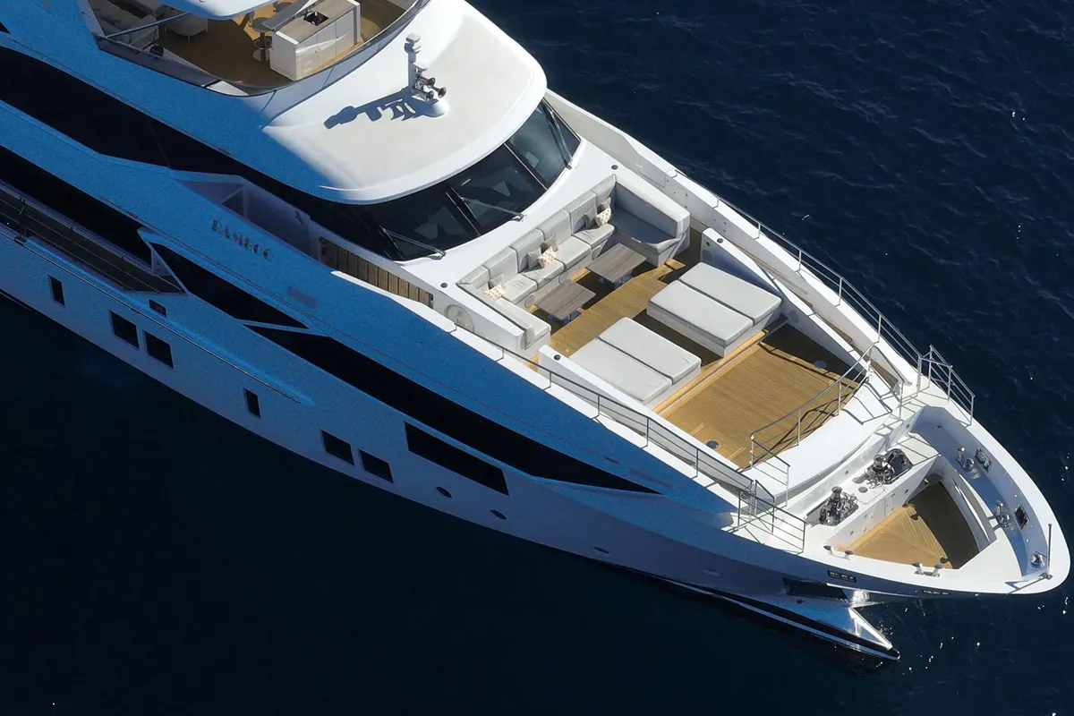 M/Y BAMBOO is a stunning 38.1-metre Benetti Fast 125 superyacht delivered in 2019, representing the perfect balance between Italian luxury, cutting-edge naval architecture, and high-performance cruising. Built with Benetti’s proprietary D2P® (Displacement-to-Planing) hull and a carbon-fibre superstructure, she delivers smooth, efficient performance across all speed ranges while maintaining exceptional onboard comfort.