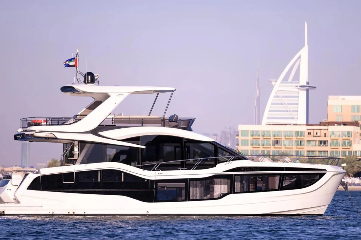 The 2025 Galeon 560 Fly presents a rare opportunity to acquire a lightly used, premium-spec flybridge yacht in Dubai. Powered by twin Volvo Penta D13-900 shaft-drive engines with only 100 hours on each engine, she delivers smooth cruising at 23 knots and a confident top speed of 32 knots.