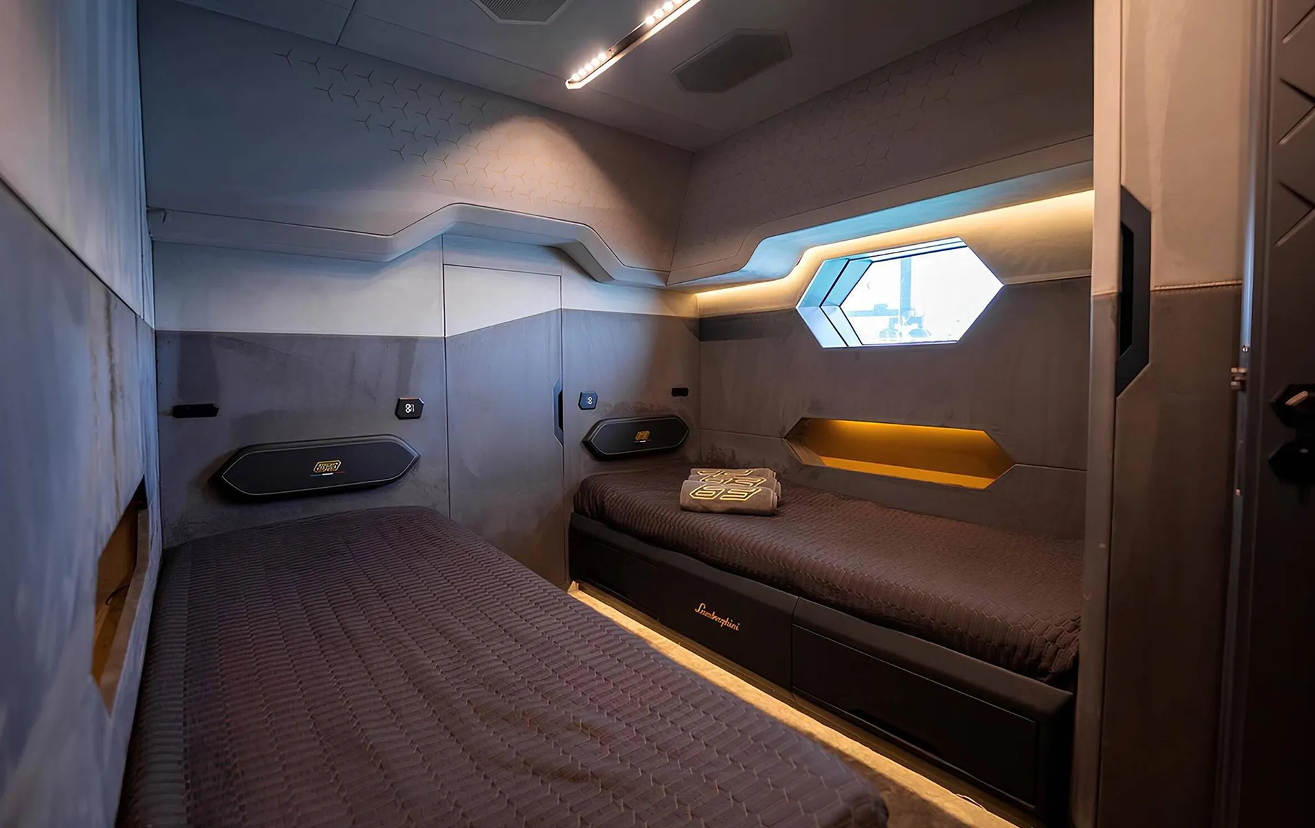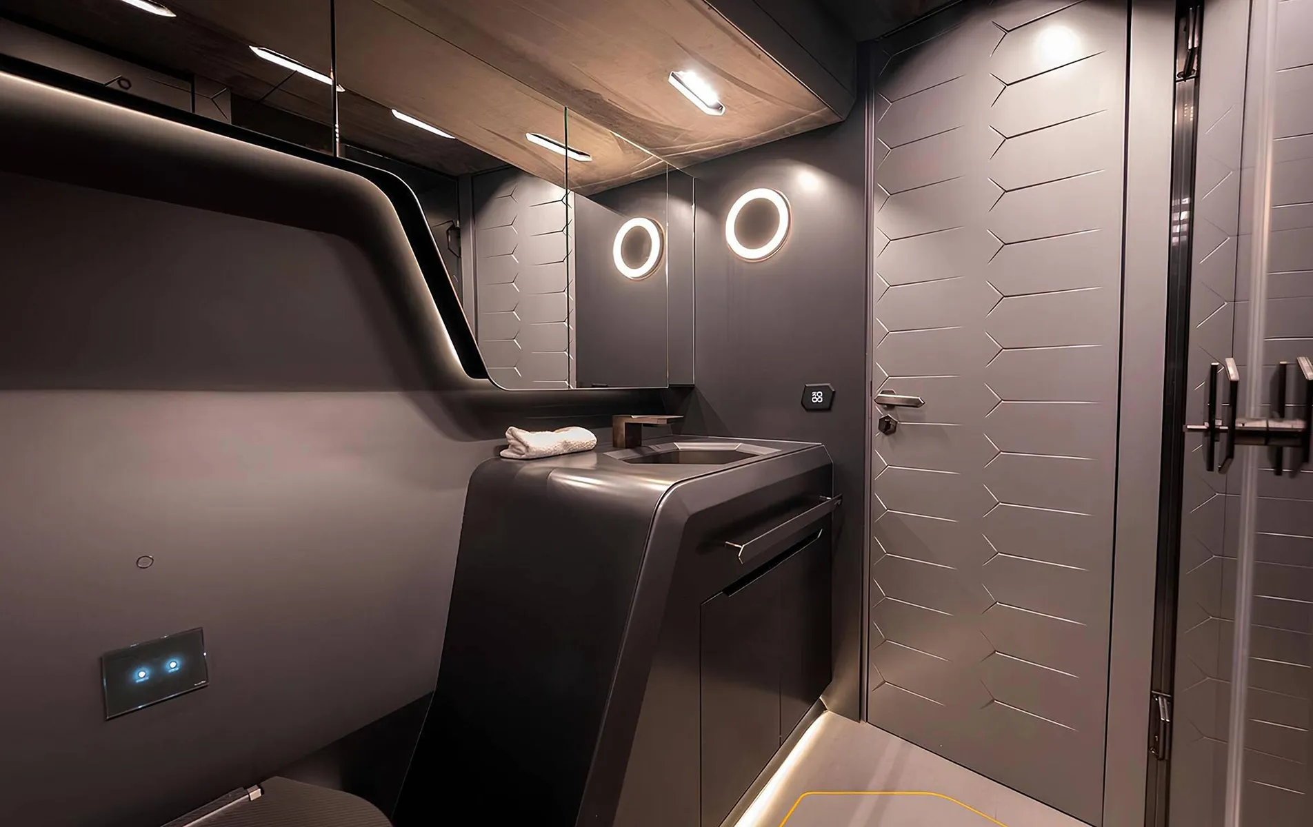 Constructed primarily in carbon fiber, the yacht weighs just 24 tons, enabling extreme performance and hyper-agile handling. Powered by twin MAN V12-2000 engines, she delivers a staggering 63-knot top speed, placing her among the fastest production yachts in the world.
