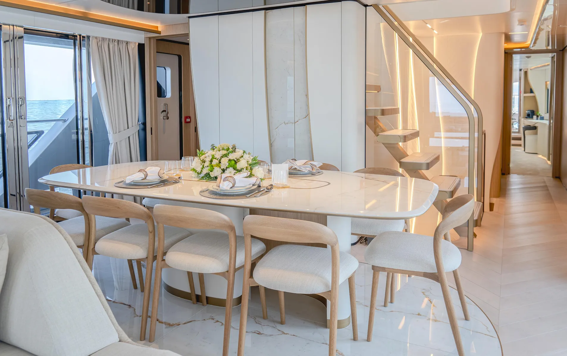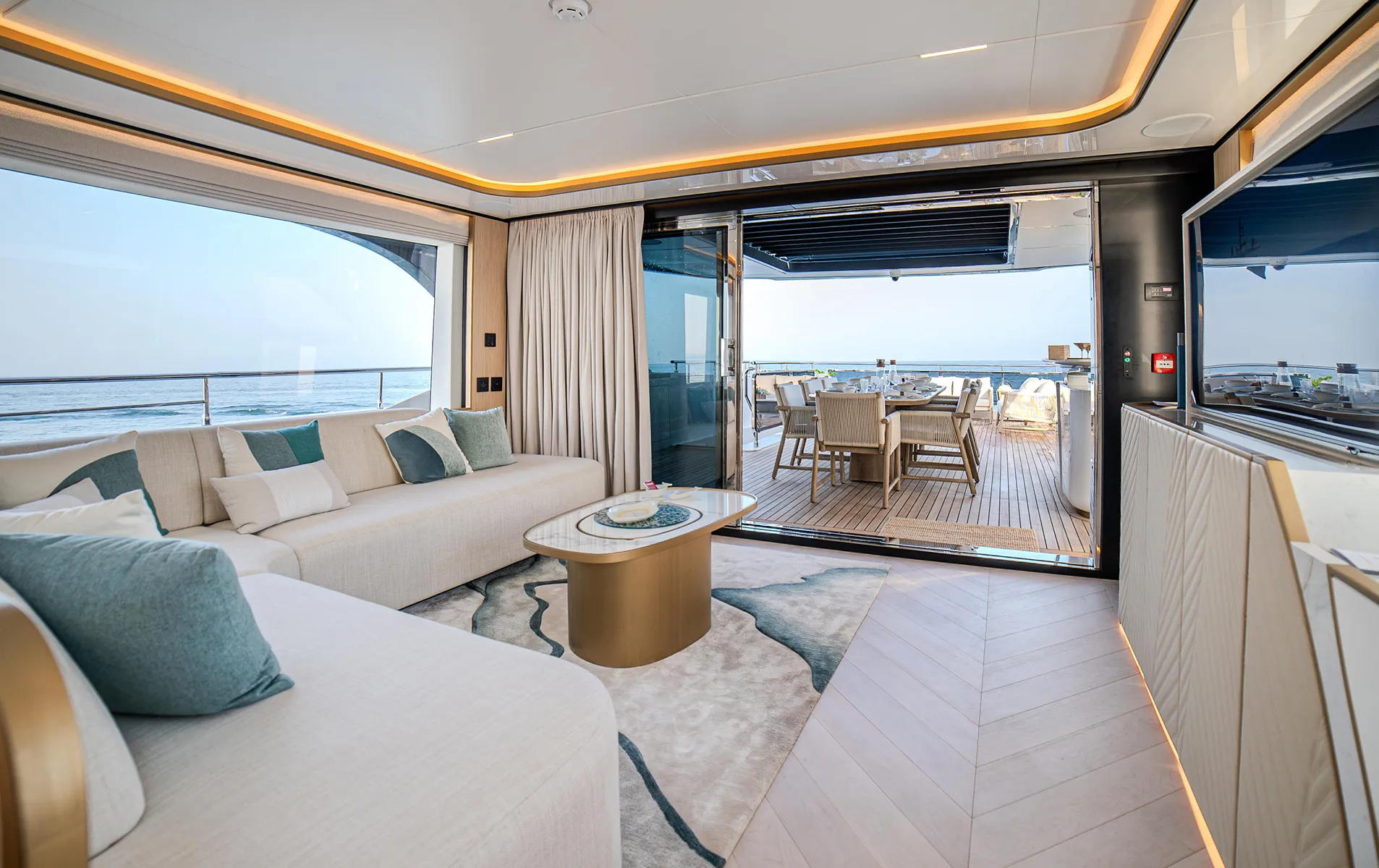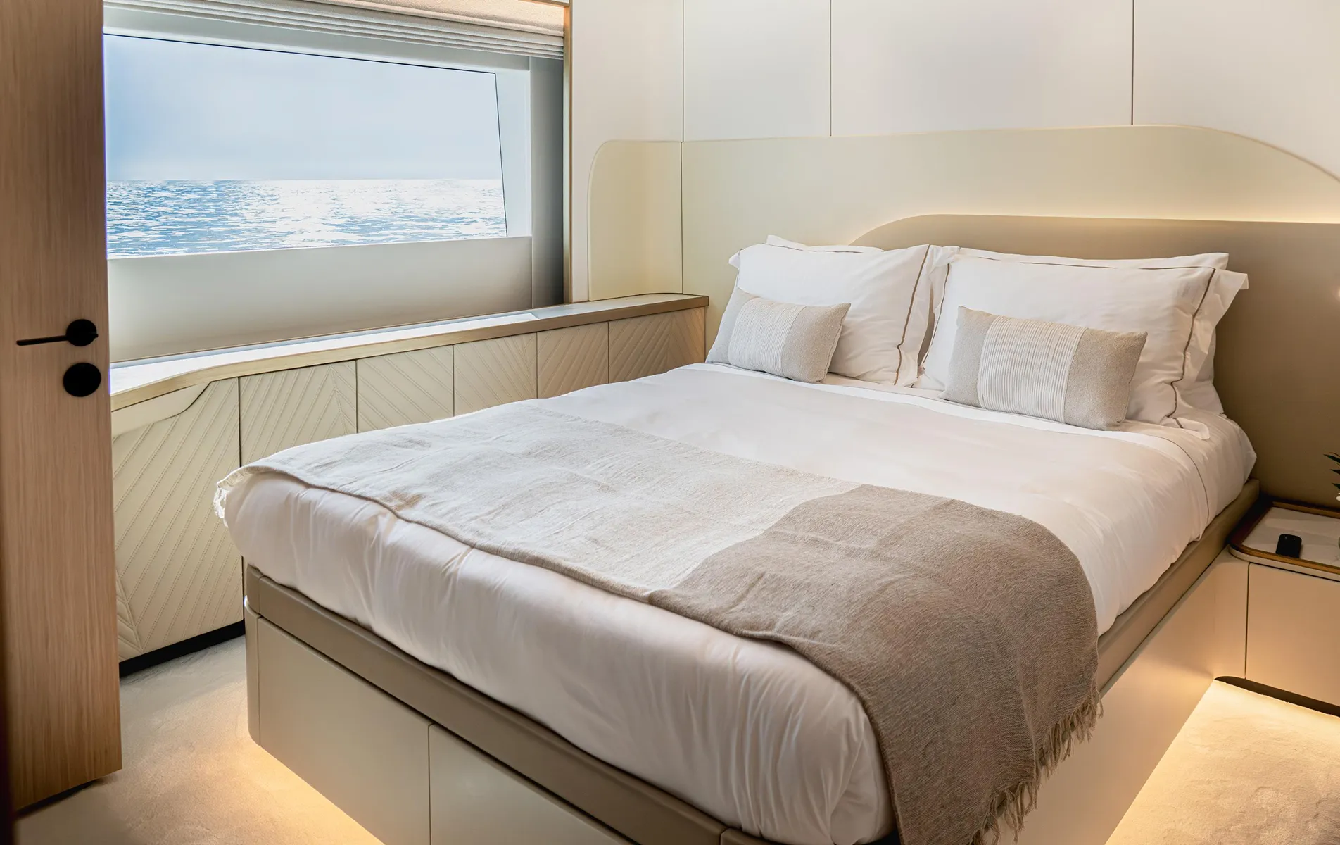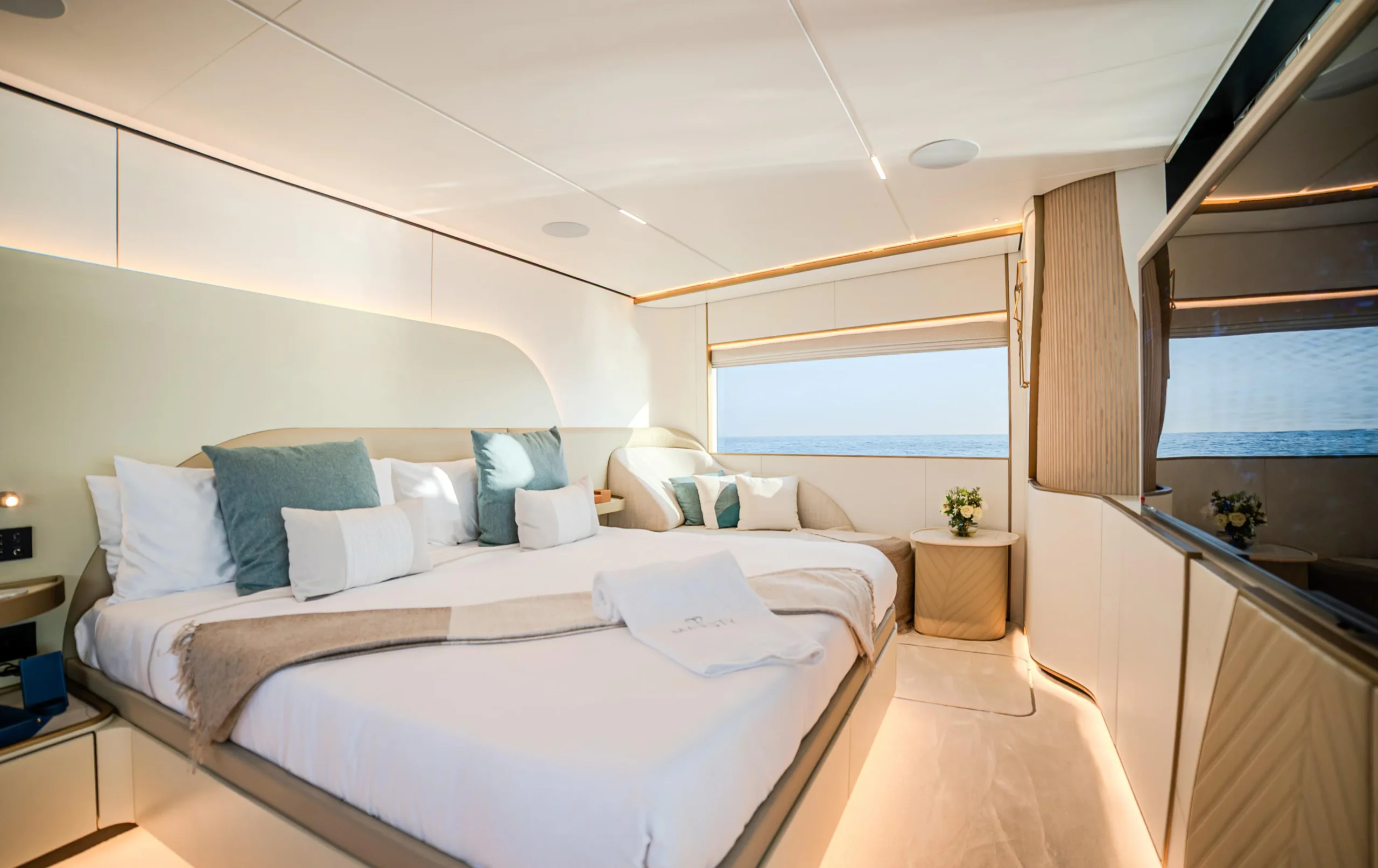 Available strictly as a build-to-order yacht with delivery options for 2025โ2026, this model offers flexibility for interior finishes and layout customization.