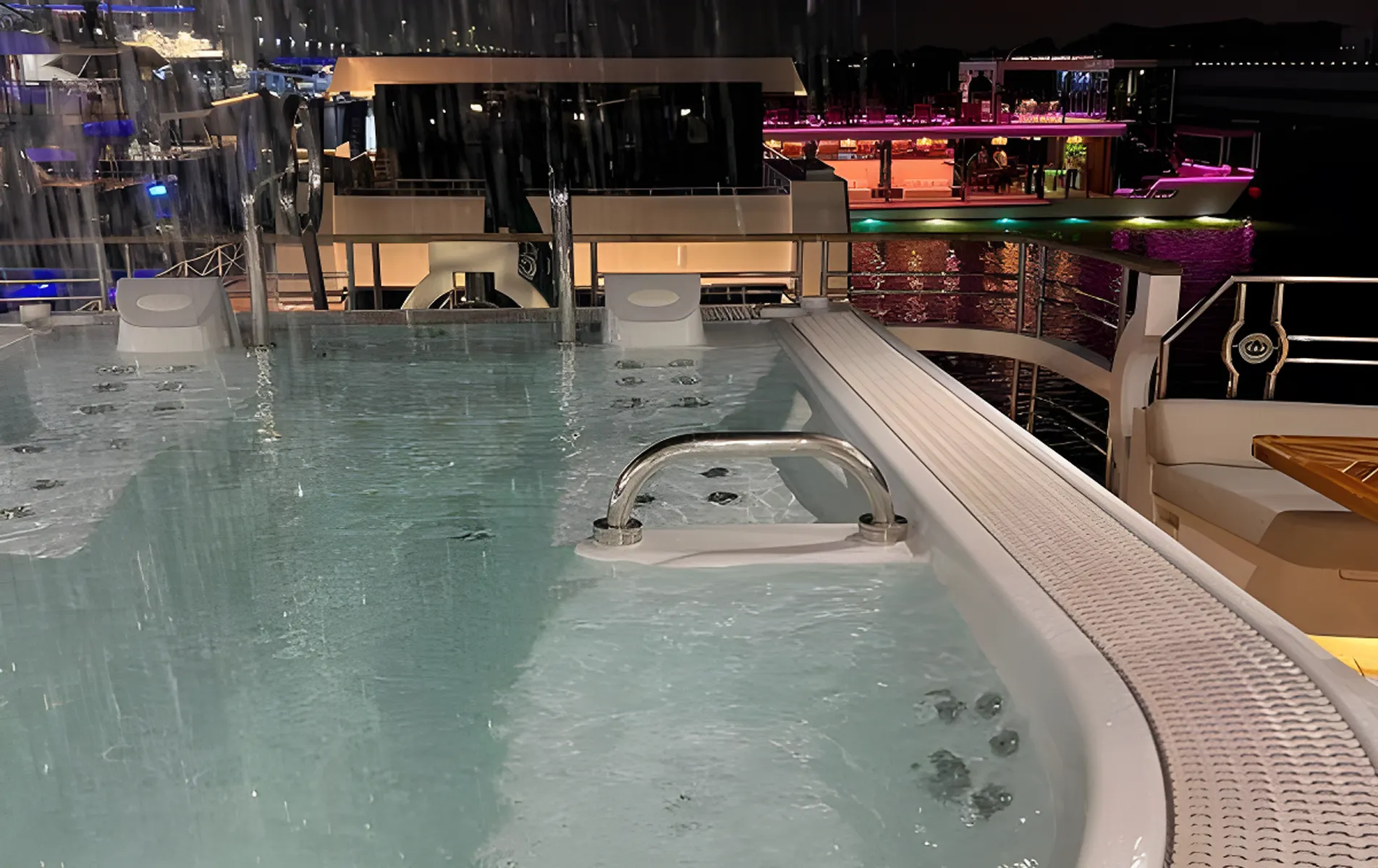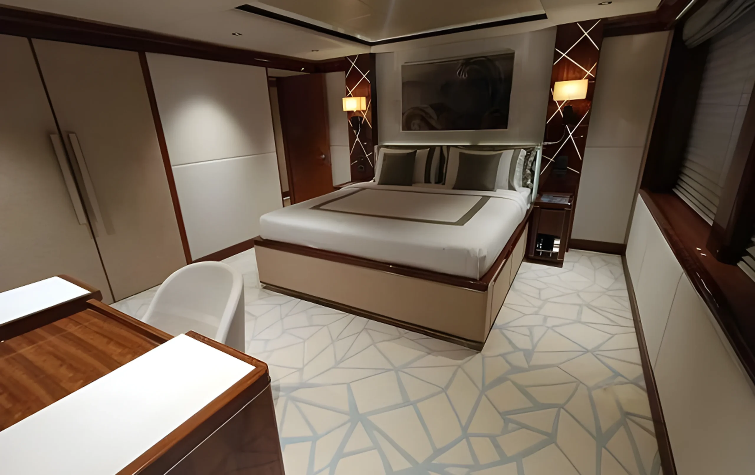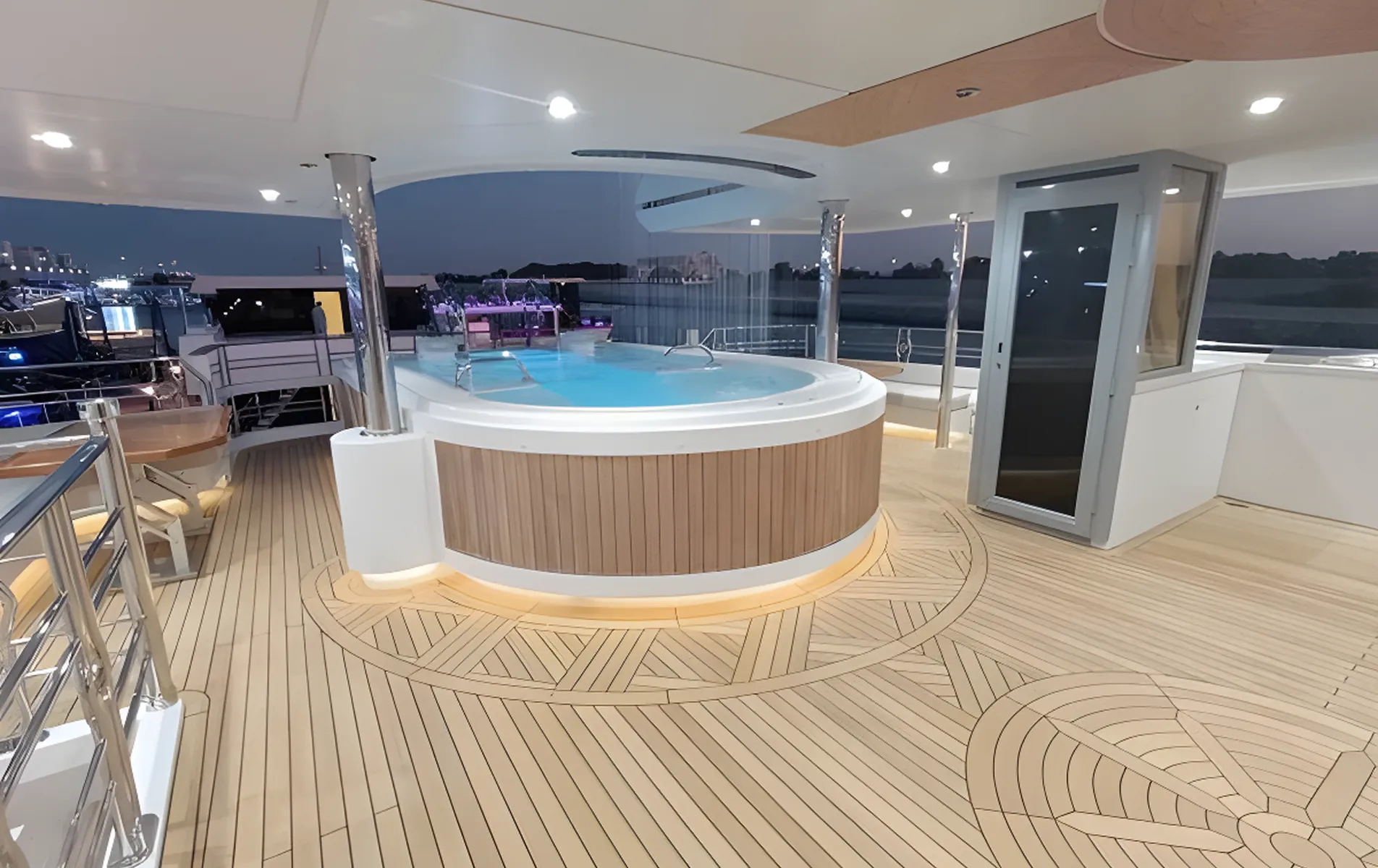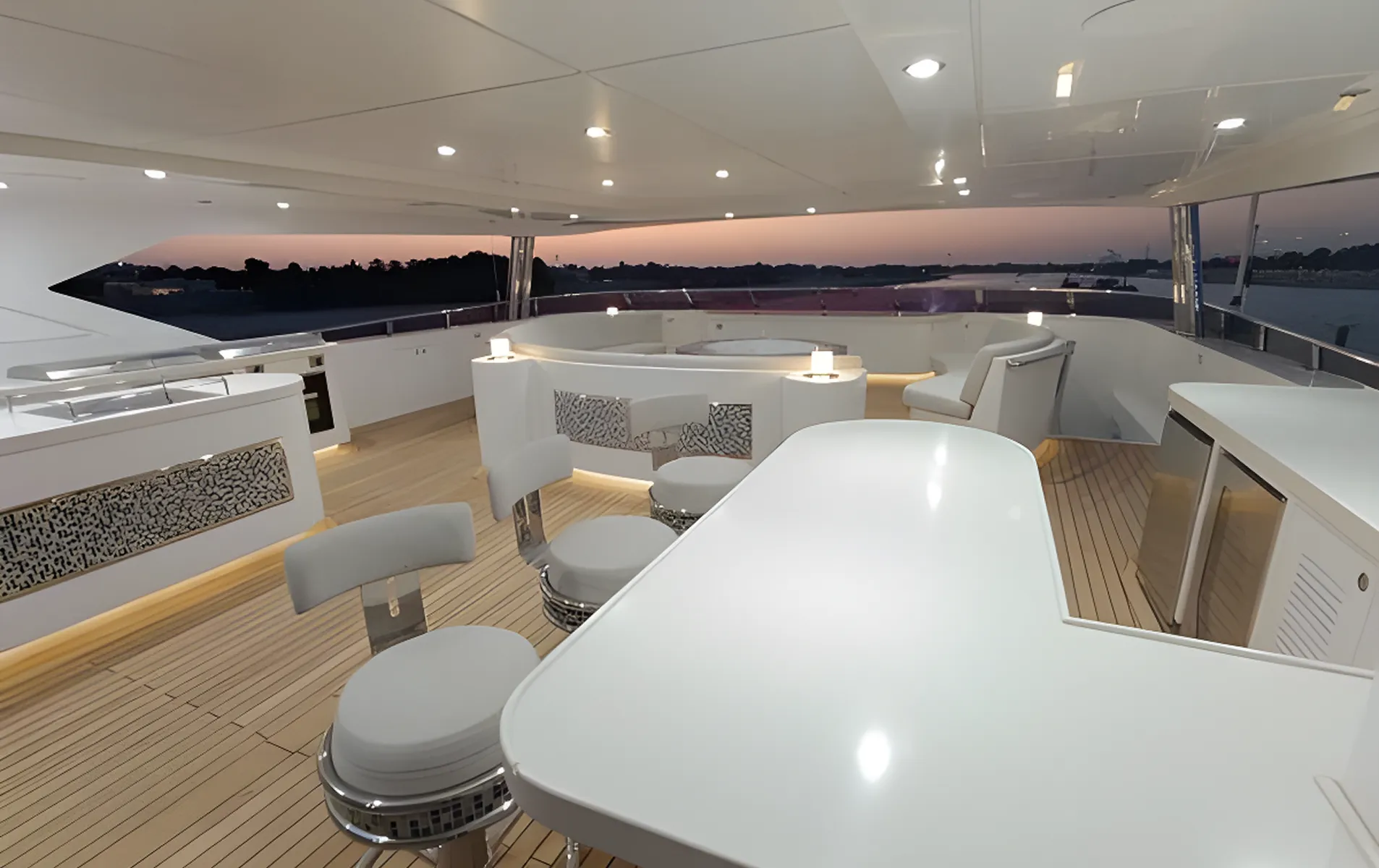 With generous interior spaces, advanced entertainment systems, and multiple guest areas across several decks, SEHAMIA offers a refined superyacht experience. Highlights include a bridge-deck master suite, a large sun deck with Jacuzzi and pool, a beach club with tender garage, and two elevators connecting all decksโfeatures rarely found in this size category.