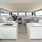 The yacht boasts spacious cabins, modern galleys, comfortable lounges, and state-of-the-art entertainment systems, blending comfort with eco-conscious design.
