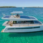 It utilizes advanced solar panels integrated seamlessly into the yacht’s design, powering electric motors and onboard systems while minimizing environmental impact.