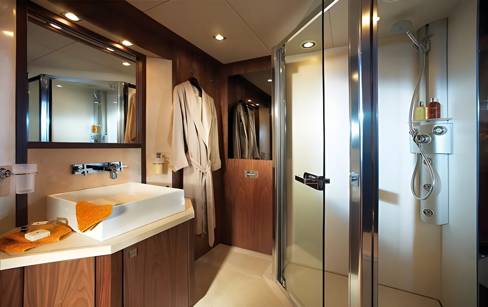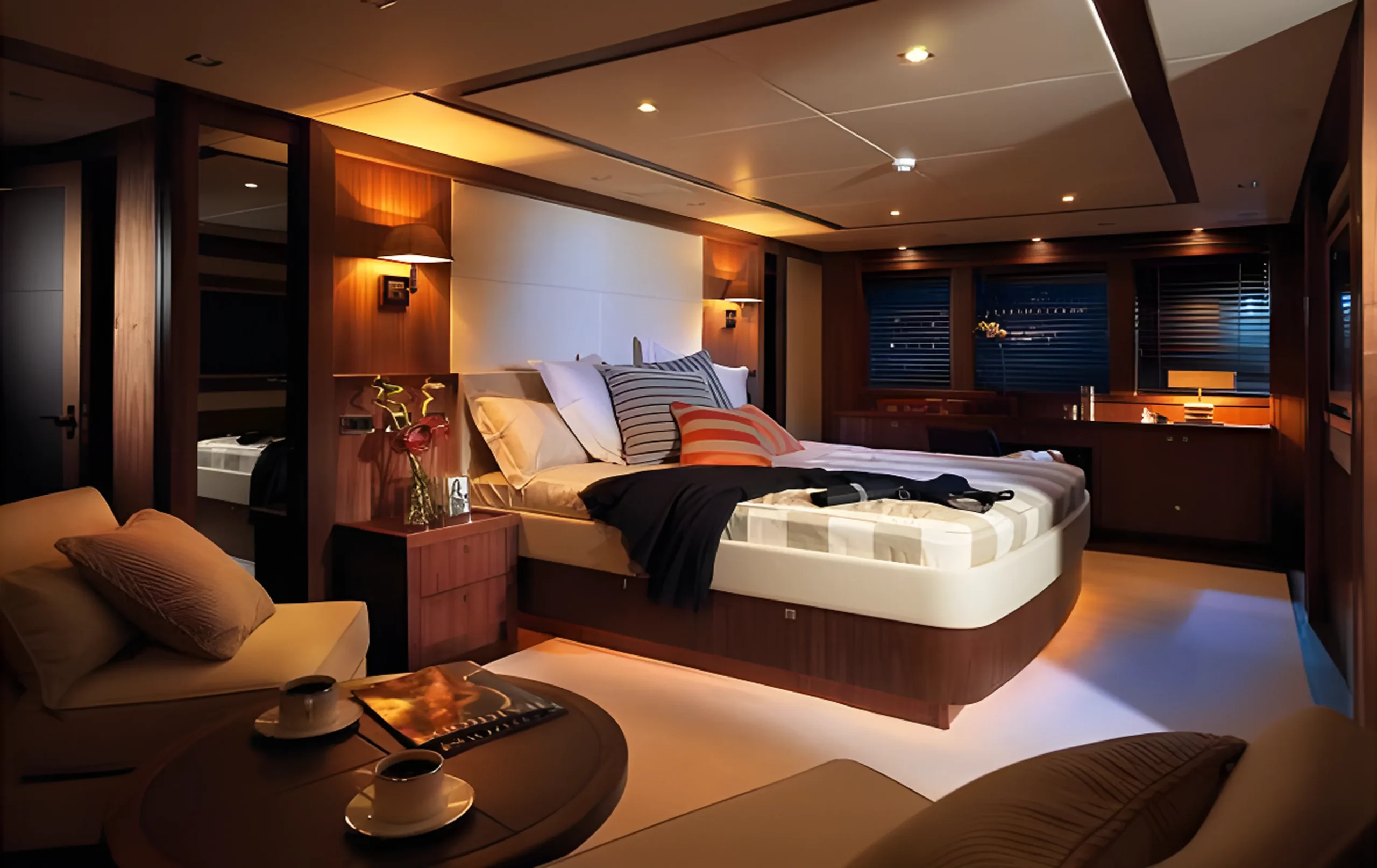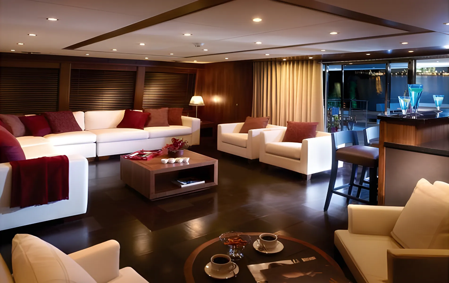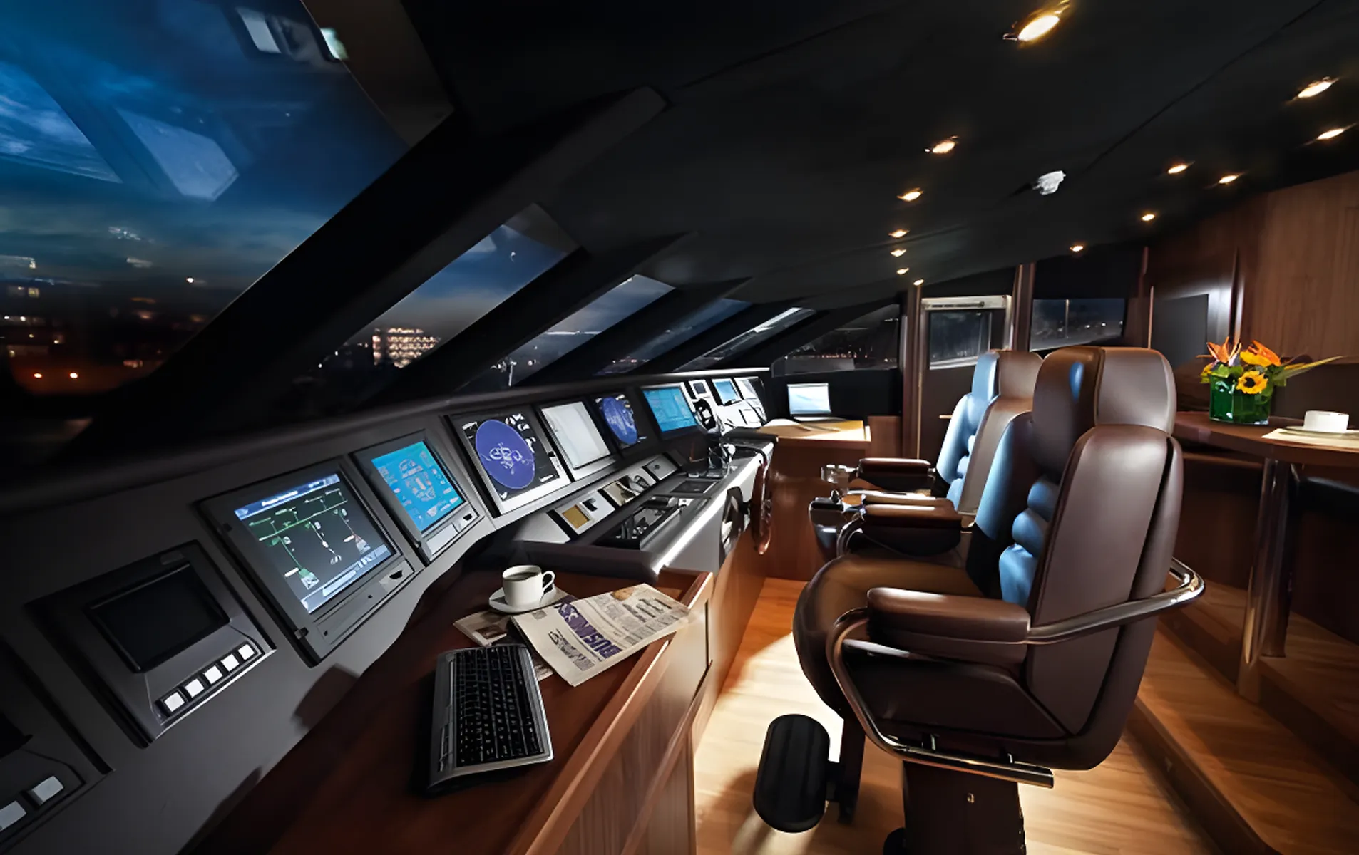 Her deep-V hull provides confident cruising in offshore conditions, while zero-speed stabilisers ensure outstanding comfort at anchor. Generous exterior deck spaces, a full flybridge, upper-deck lounge, and expansive interior areas make this yacht a strong all-round platform for long-range cruising and high-end charter operations.