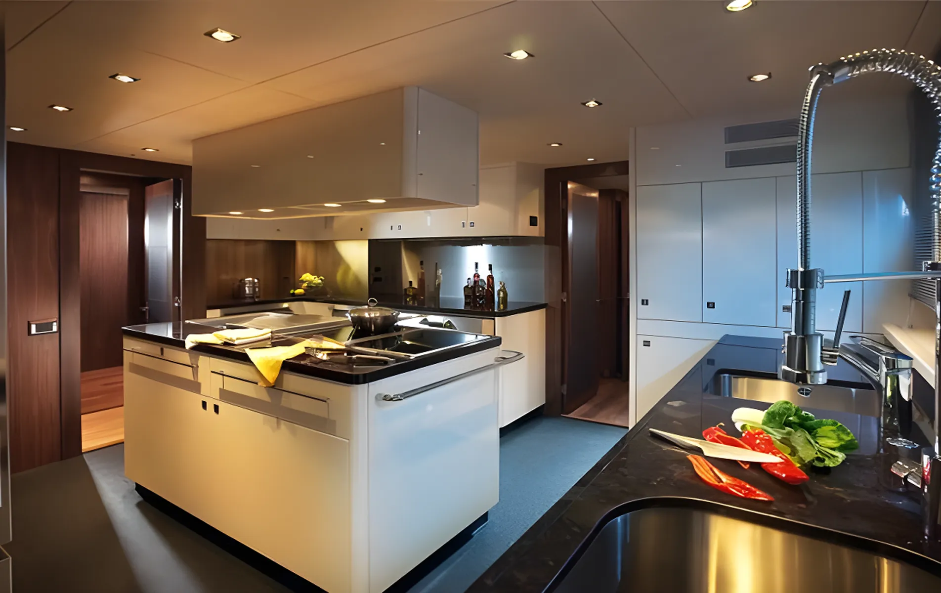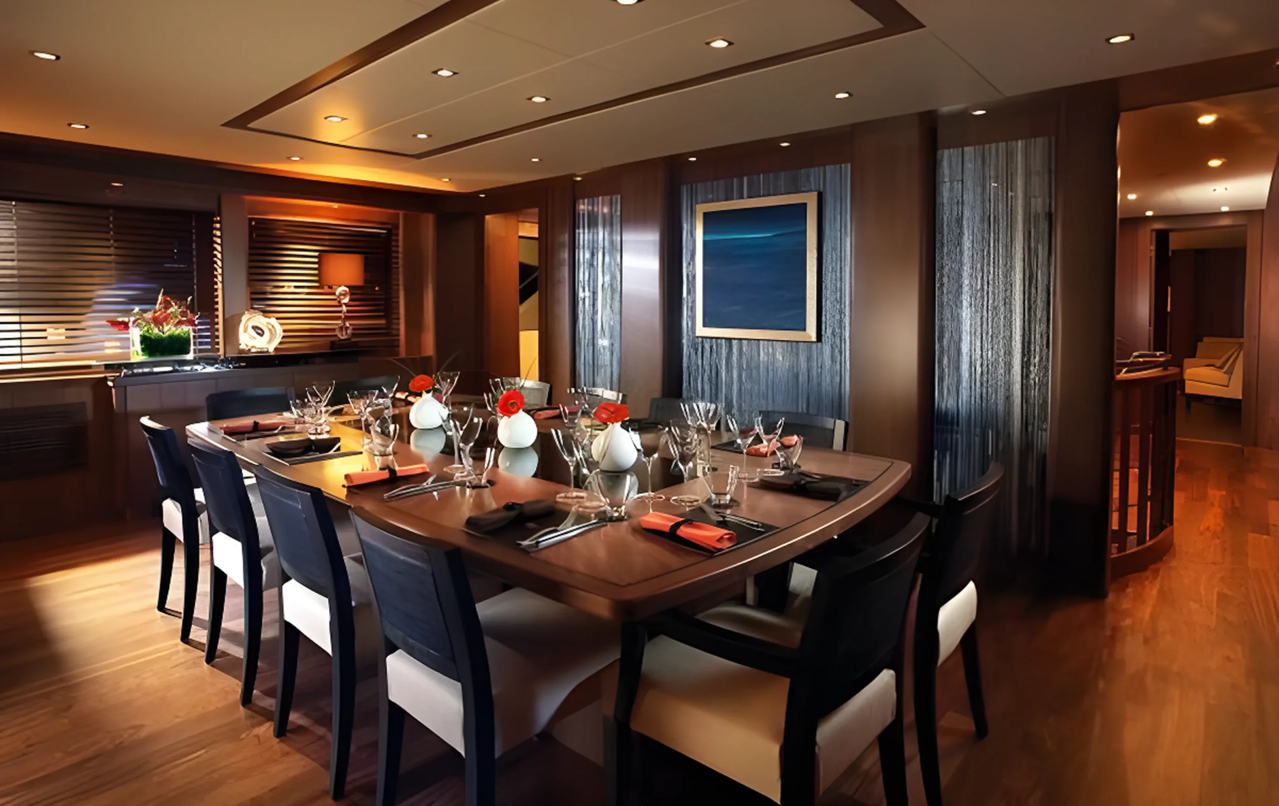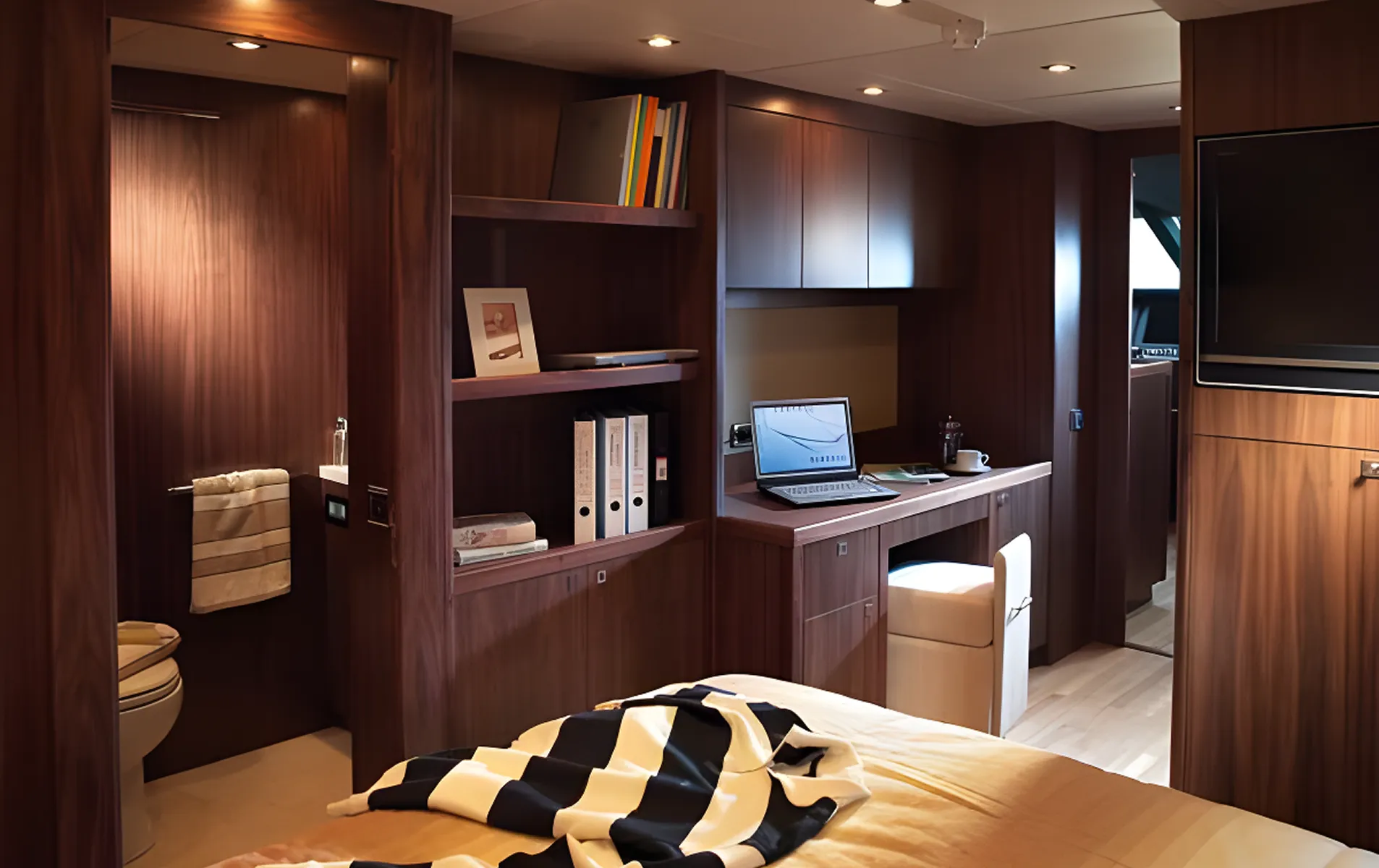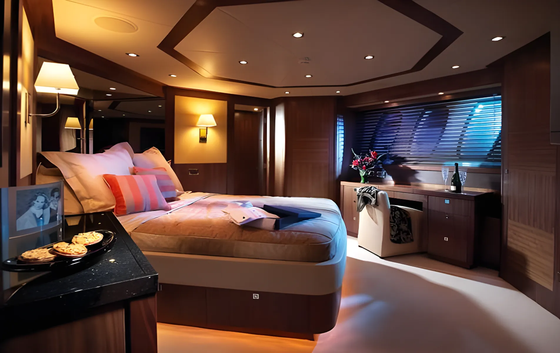 Her deep-V hull provides confident cruising in offshore conditions, while zero-speed stabilisers ensure outstanding comfort at anchor. Generous exterior deck spaces, a full flybridge, upper-deck lounge, and expansive interior areas make this yacht a strong all-round platform for long-range cruising and high-end charter operations.