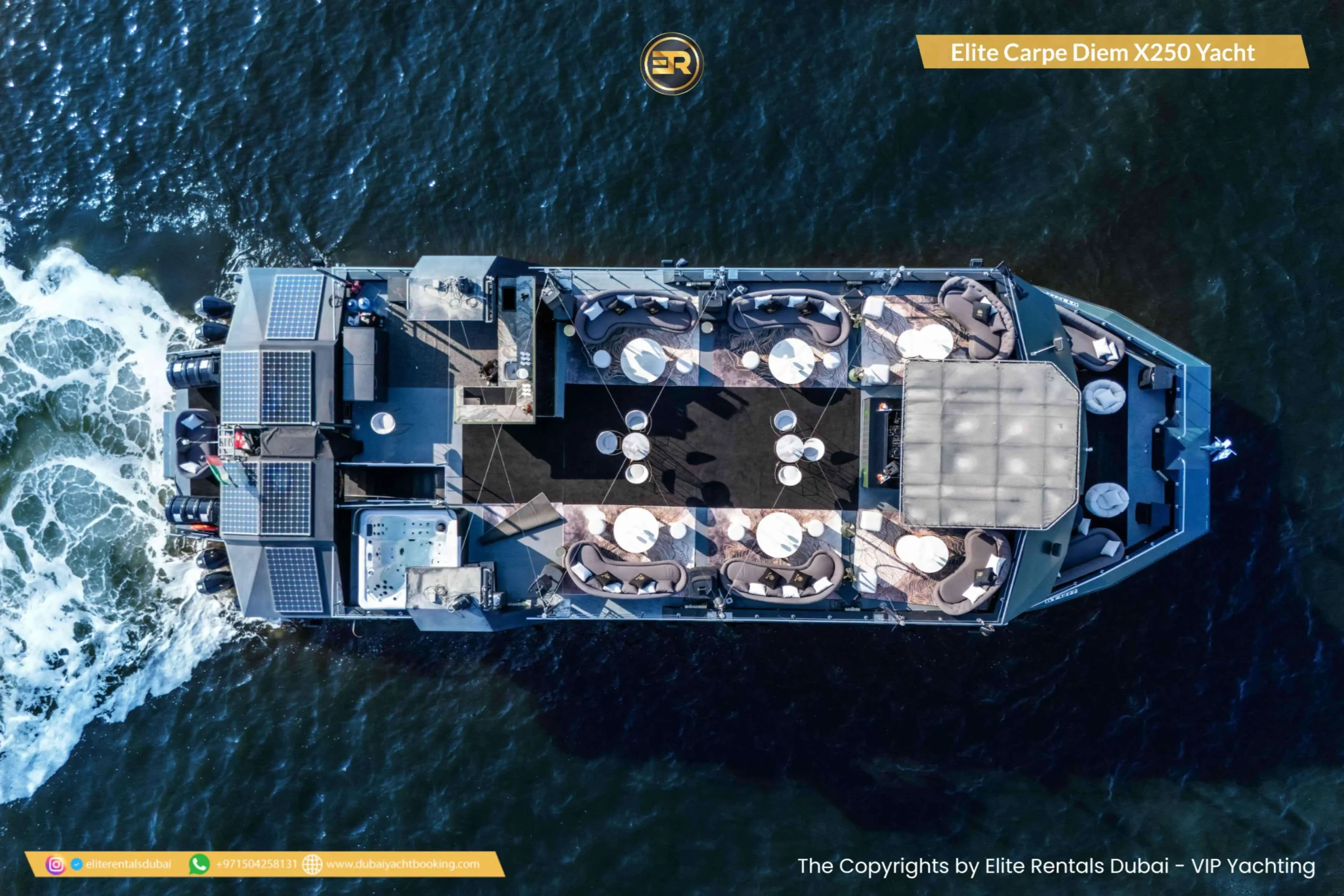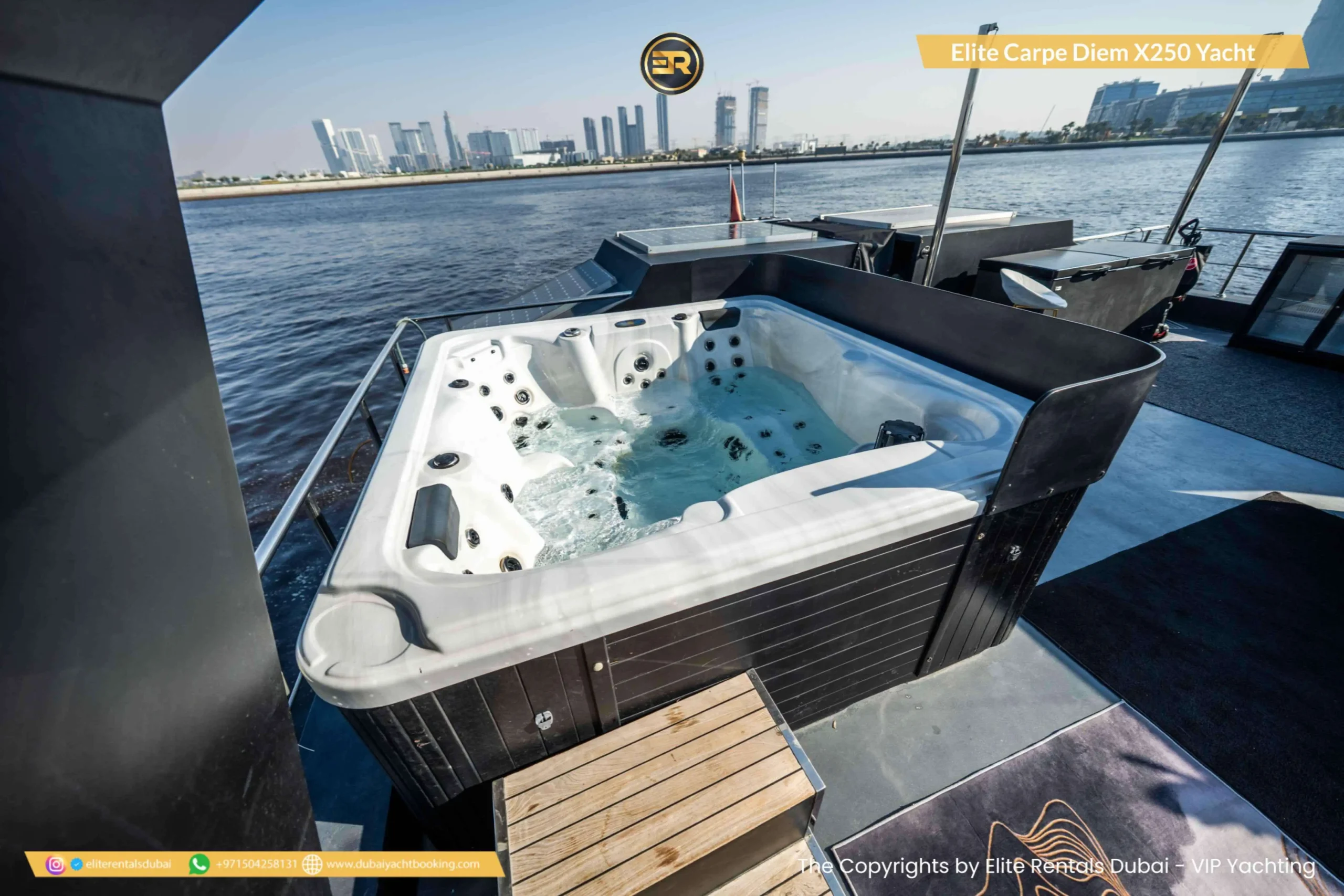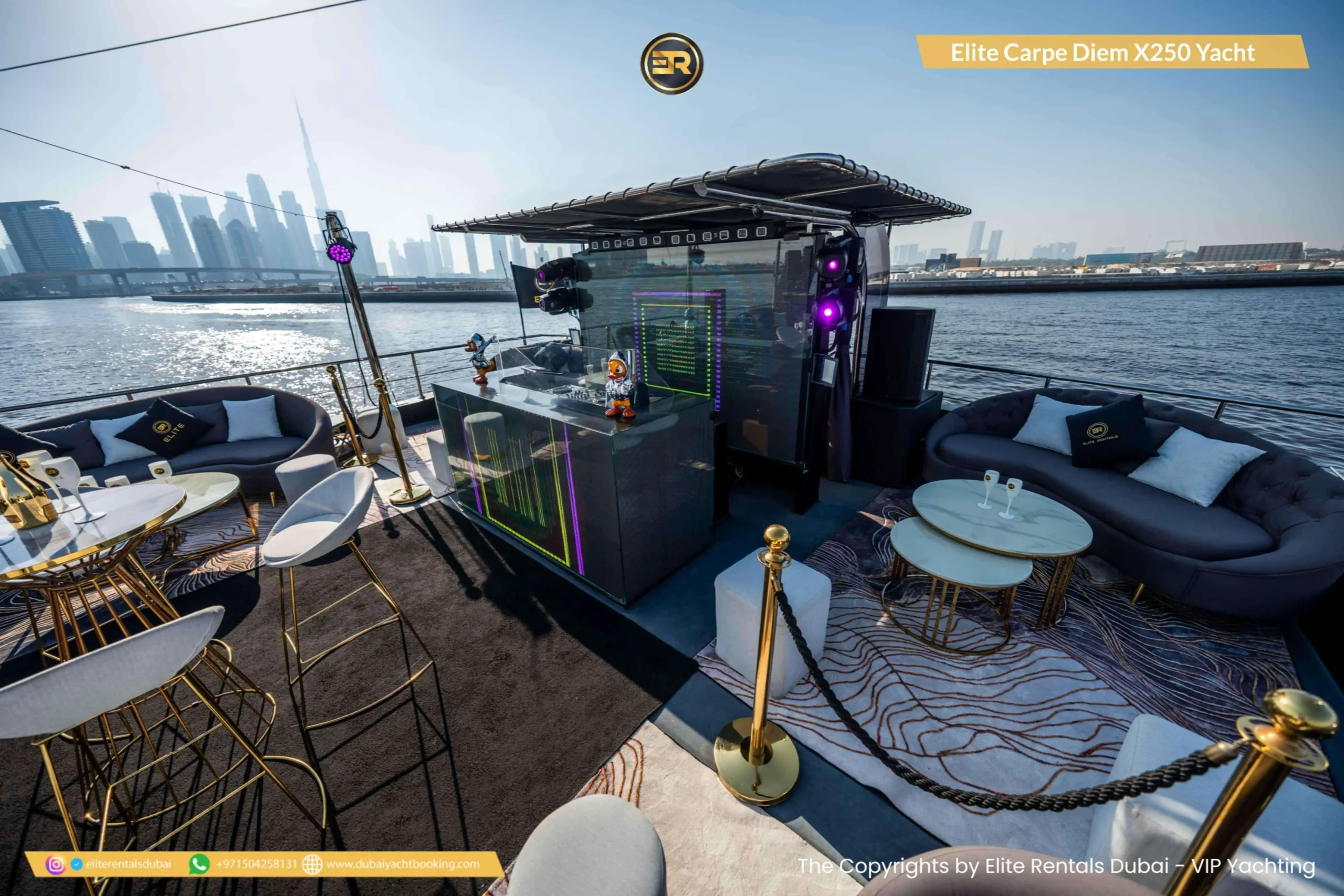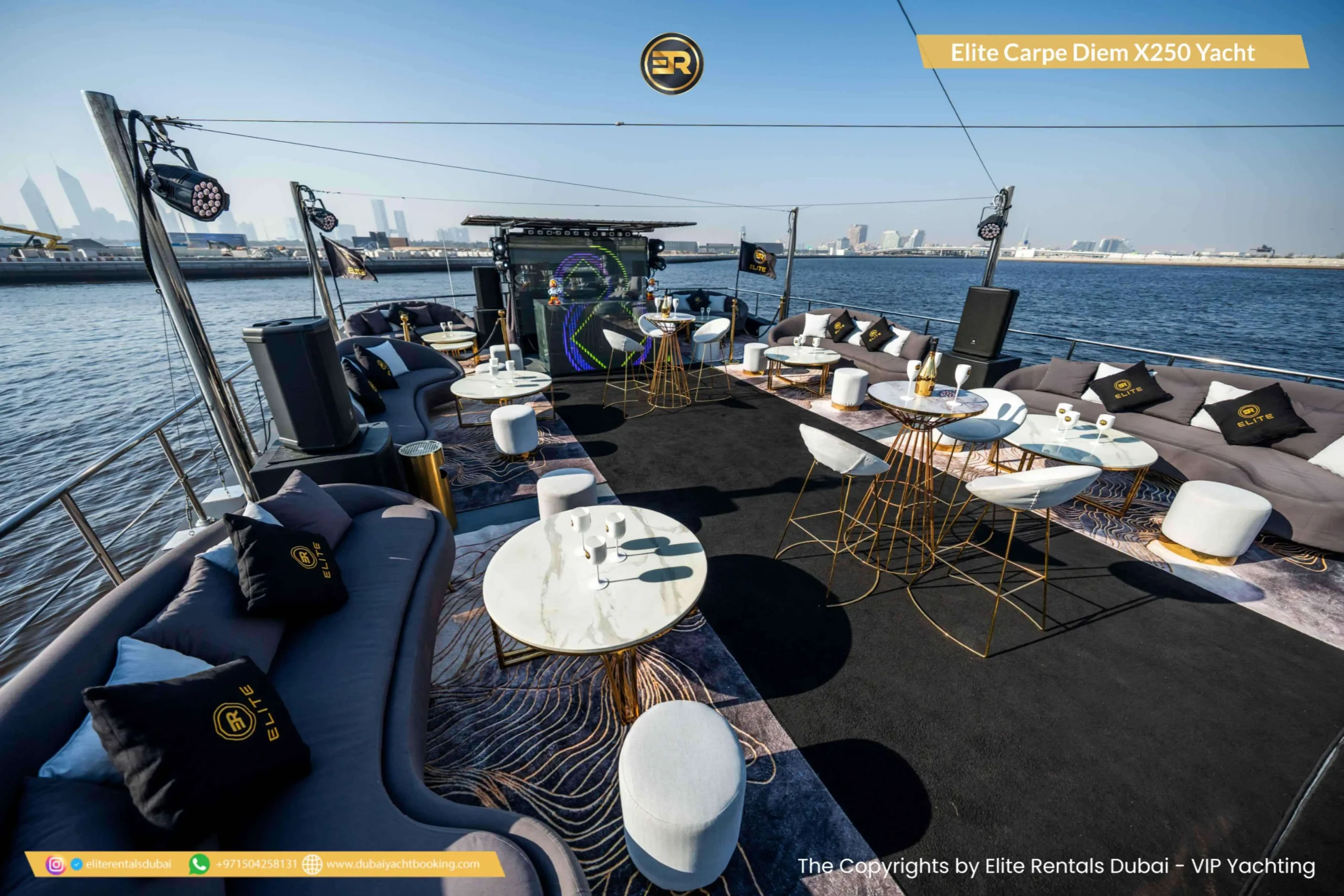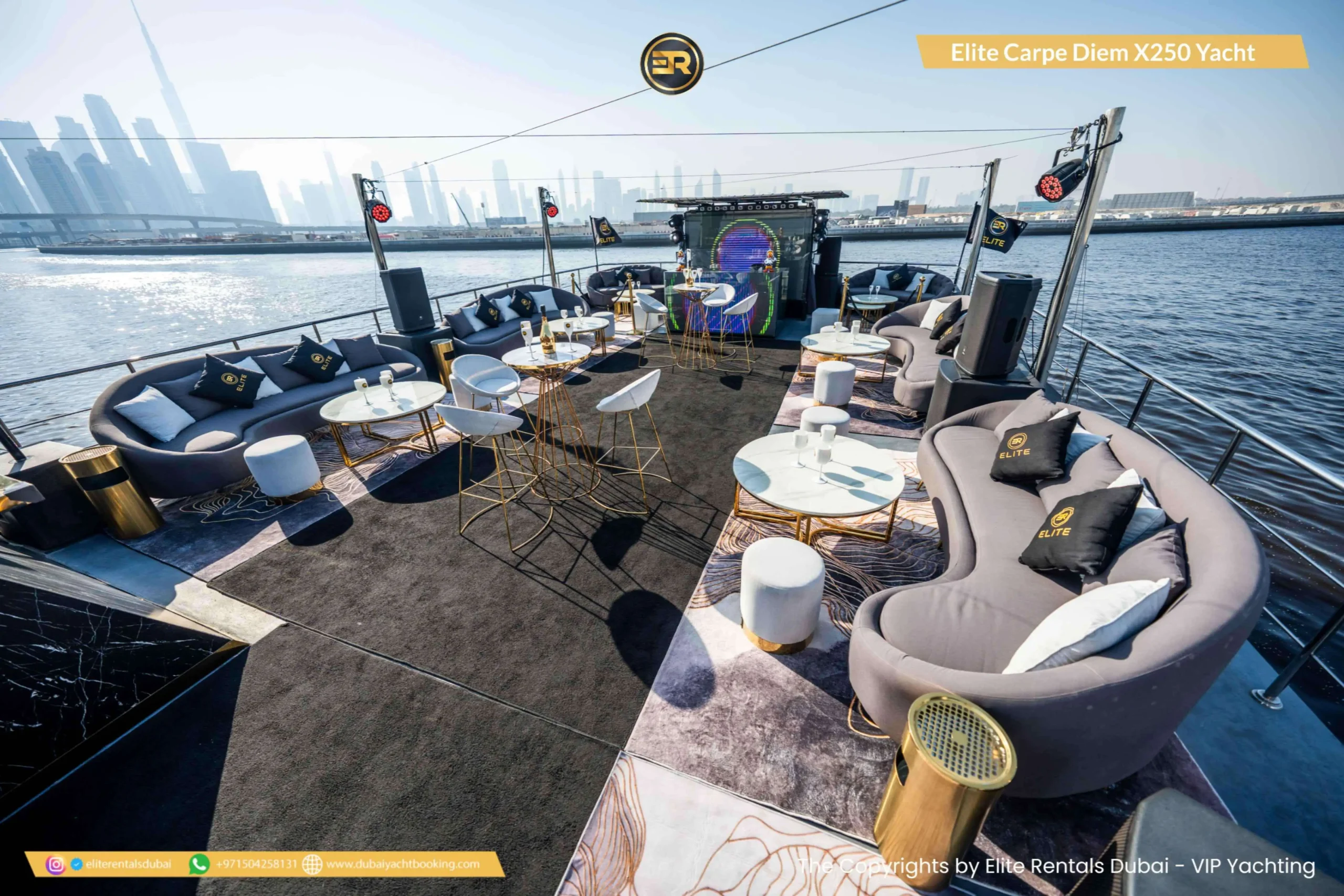 The Elite Carpe Diem Prestige X-250 Yacht is an opulent vessel offering everything you need for an extraordinary yachting experience in Dubai. This 250-foot yacht is ideal for large gatherings, corporate events, or luxurious private retreats. With expansive decks and stylish outdoor lounges, the yacht offers spectacular views of the Dubai skyline and coastline. Inside, the yacht features lavish lounges, sophisticated dining areas, and luxurious cabins designed for the ultimate comfort. The Prestige X-250 also offers advanced amenities, ensuring a seamless and memorable experience. Whether you’re planning a grand event or simply want to enjoy a day of luxury on the water, the Carpe Diem Prestige X-250 is the perfect choice. Book this stunning yacht today through Elite Rentals for an unforgettable experience.